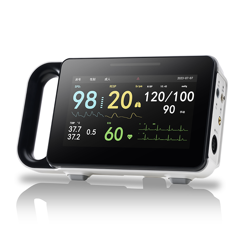 ● Patient Monitor System has a 7-inch color LCD display, supporting medical transfer and clinical settings.